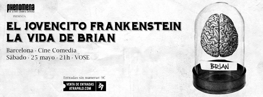 Phenomena continúa trayendo a la gran pantalla los grandes clásicos del cine, esas películas que a muchos nos encantan y querríamos ver en pantalla grande. en esta ocasión le toca el turno a dos clásicos del humor «El jovencito Frankesntein» y «La vida de Brian«, Mel Brooks y Los Monty Python juntos para hacernos pasar una gran noche de humor el próximo día 25 de Mayo en el cine Comedia (Psg. de Gràcia 13) en Barcelona, a las 21 horas.