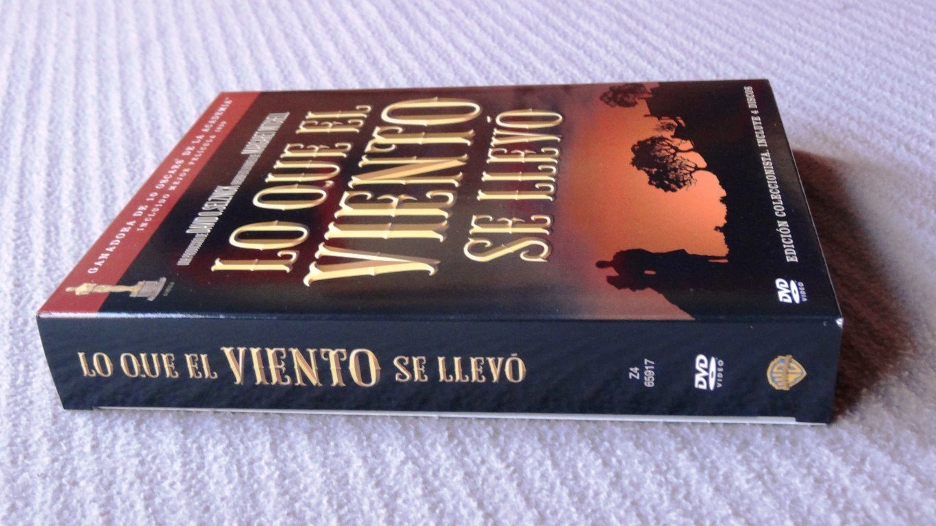El frontal presenta el título en gran formato en letras doradas acompañado de una imagen icónica del film. En el frontal también especifica que se trata de una edición coleccionista de 4 discos y que la película ganó 10 oscars en 1939.